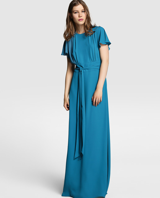 Vestido azul de fiesta con manga corta (119,95 euros)