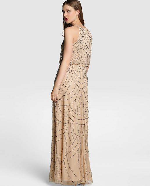 Vestido largo nude con strass (139,95 euros)
