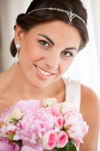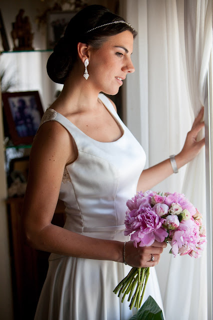María llevó un precioso ramo de rosas rosas, unos increíbles pendientes colgantes y un tocado joya de la diseñadora Anina. El precioso velo de encaje partía de un moño bajo muy sencillo.