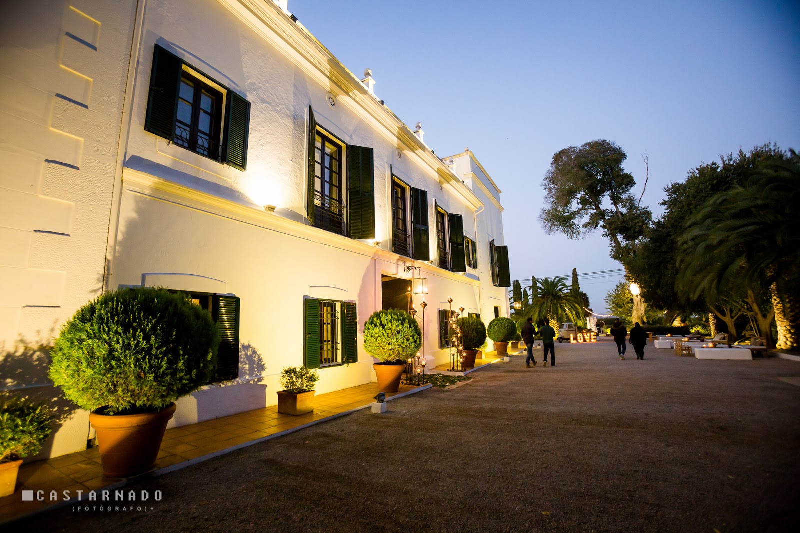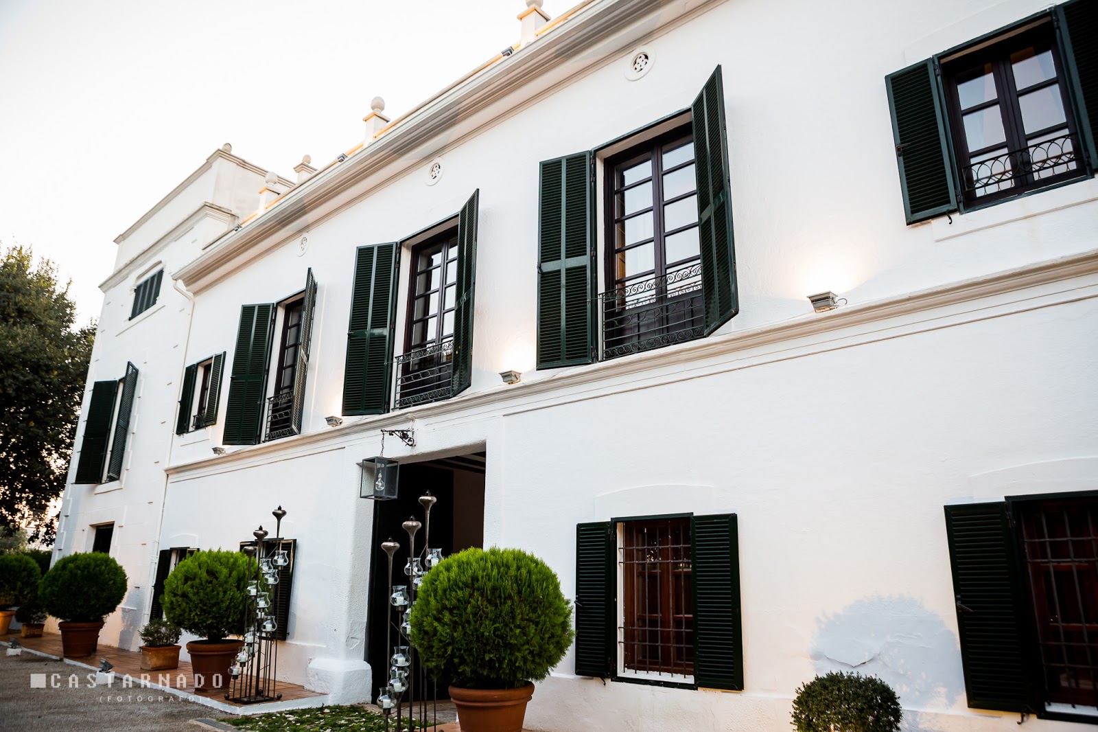 En el caso de que decidamos hacer la comida o el baile en esa zona ajardinada, el cóctel podría ser o bien en el patio interior ya mostrado o bien en la misma entrada de la masía.