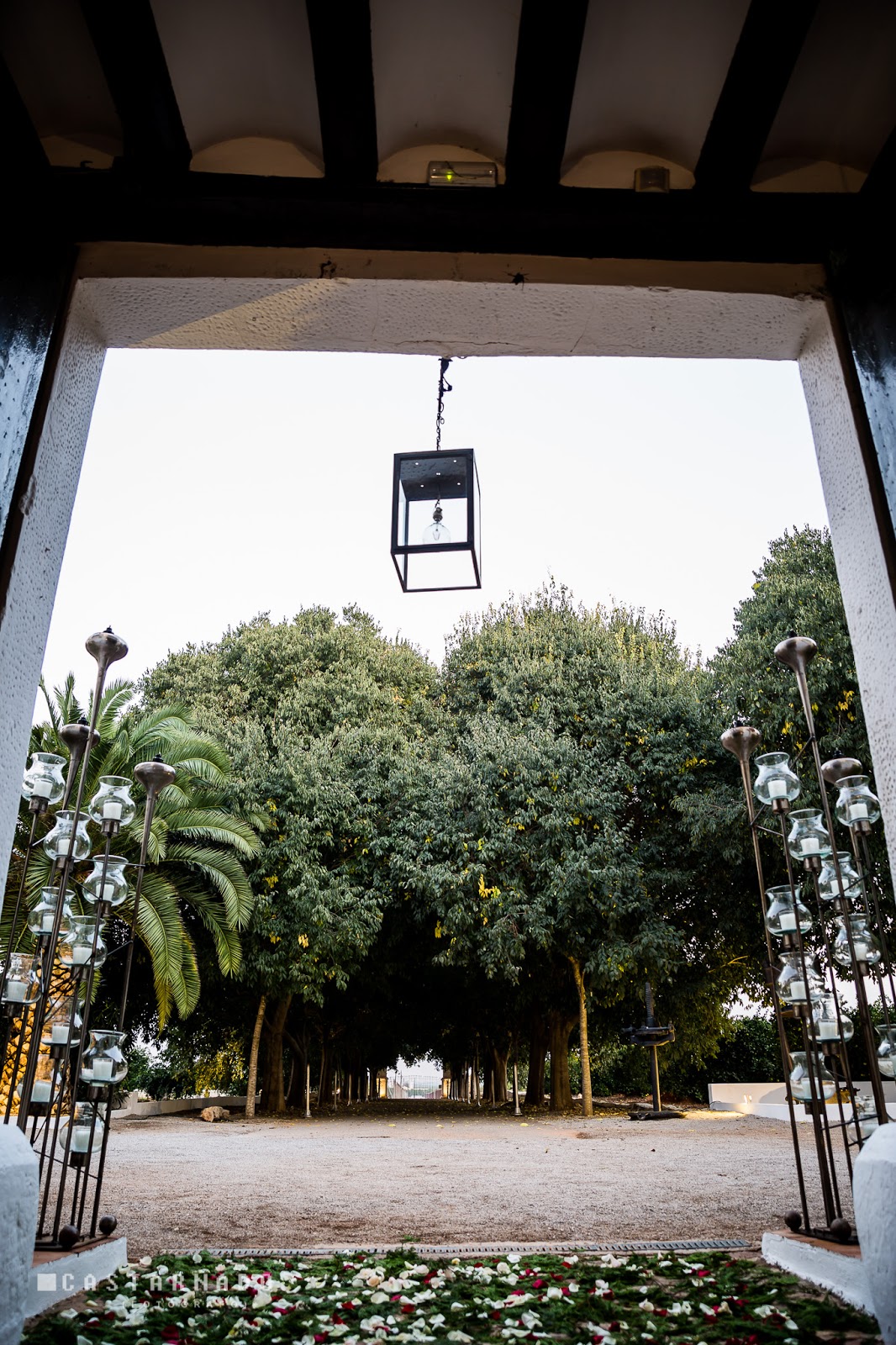 Los invitados llegarán a la masía a través de un camino, bajo un manto verde que forman los árboles de la entrada.