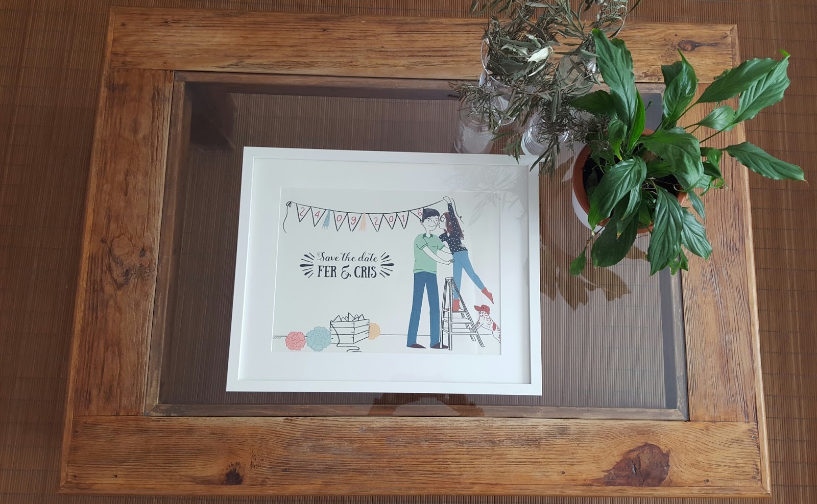 Tenía claro que MuchoChupChup participaría en mi boda de alguna manera y esto era perfecto para la gran artista que es María. Le expliqué un poco lo que tenía en mente y no le costó nada ponerse manos a la obra. Me interesaba mucho que nos viéramos reflejados en el SavetheDate y ella lo ha conseguido.