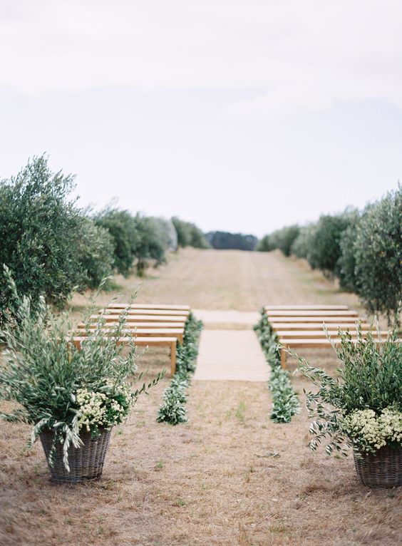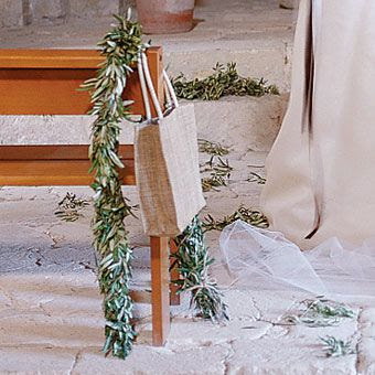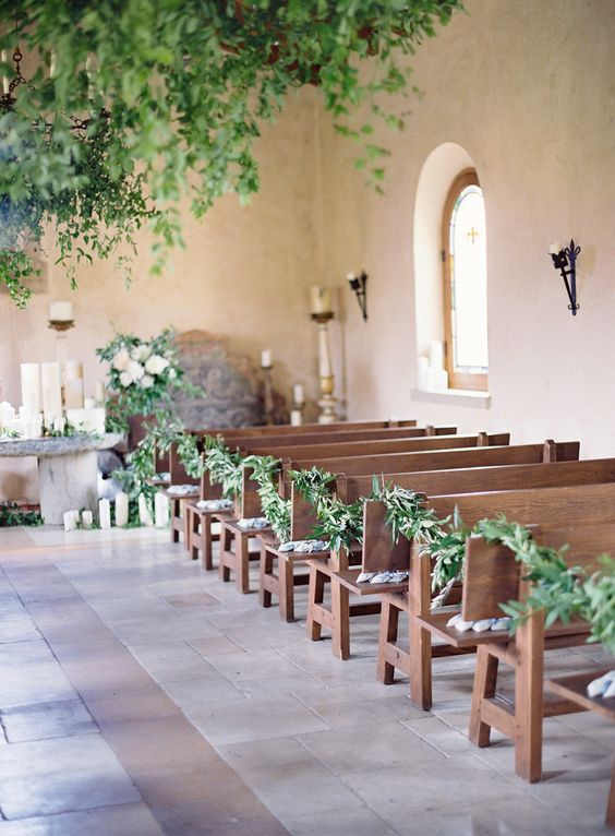 Yo utilizaré las guirnaldas como hilo conductor para toda la iglesia, aunque confieso que no sé si me resistiré a poner alguna que otra cesta con abanicos para los invitados, por ejemplo. Los arcos verdes y floridos para las puertas de entrada también me maravillan, y la posibilidad de llenar la iglesia con arbolitos de olivo me vuelve loca, lo que pasa es que deberéis pedir permiso antes. Otra cosa que sí sé seguro, es que no habrá arroz a la salida. ¿Qué habrá? Todavía sigo dándole vueltas… 😉