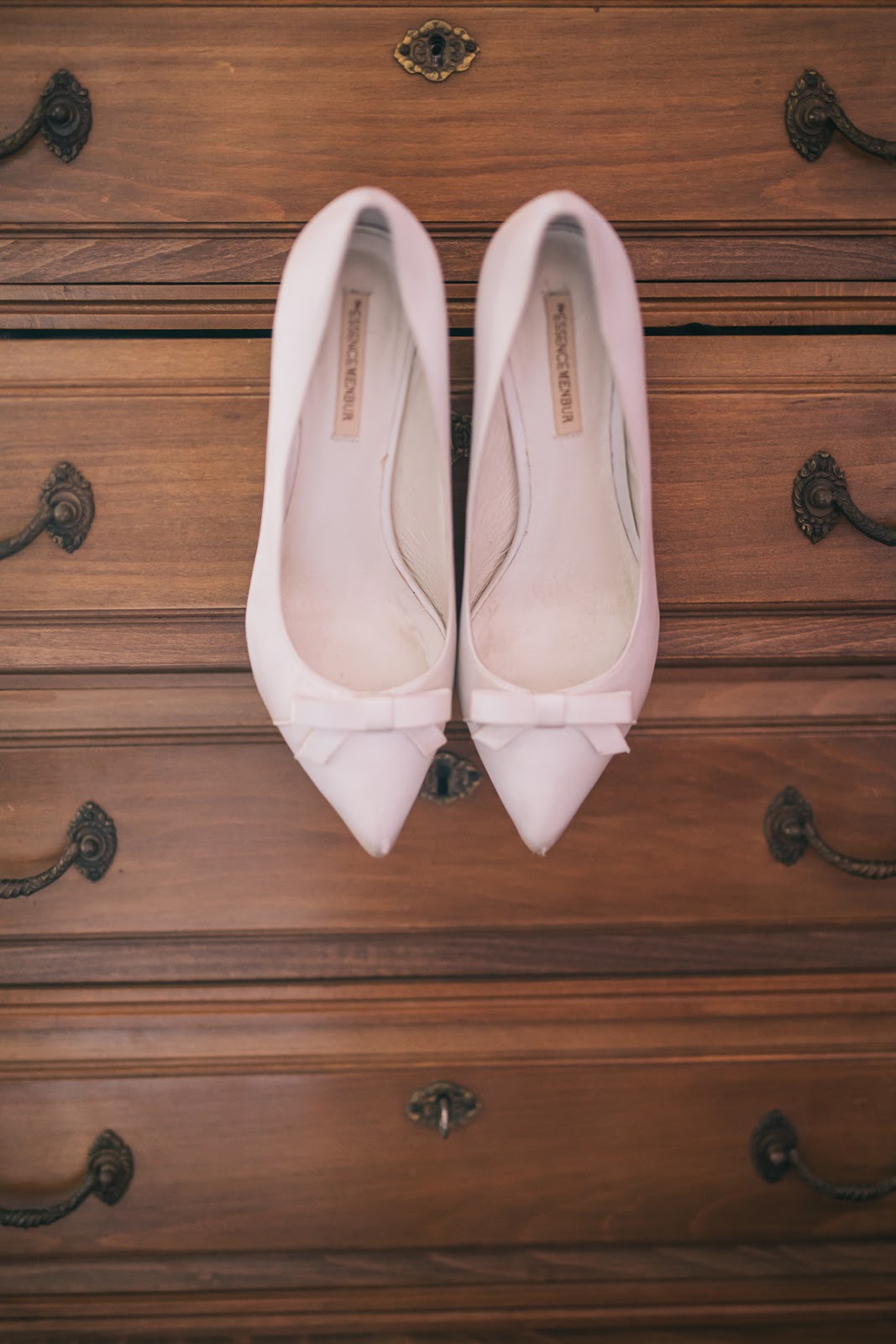 Isabel llevó un vestido de Valero&Marquez Costura con unos apliques en los hombros de Cherubina y zapatos de Menbur. El tocado de flores fue obra de su tío, florista, que también decoró la iglesia. Isabel escogió un semirrecogido ideal sobre el que colocó su tocado de flores y la salida del velo.