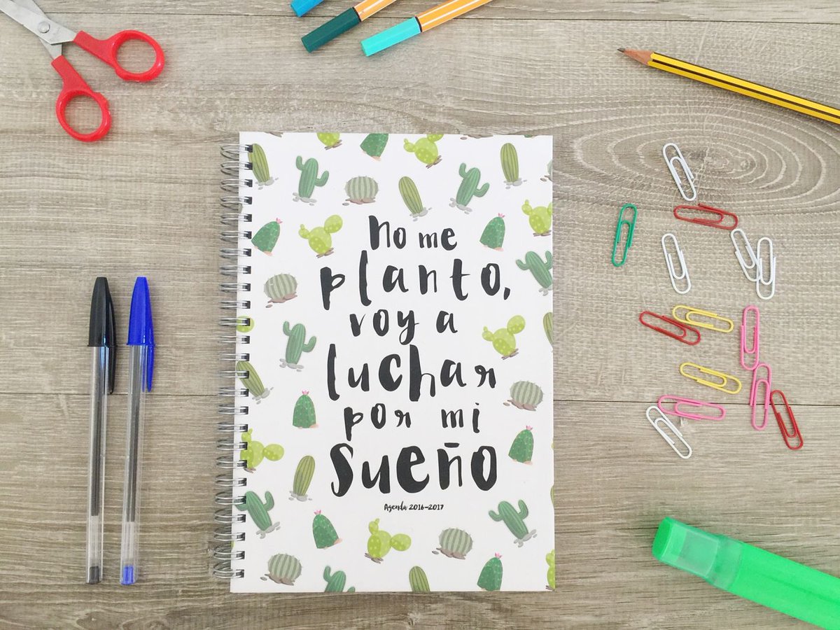 La agenda es de vista semanal y tiene el mismo espacio para escribir el fin de semana que los días de diario. Empieza en septiembre de 2016 y termina en diciembre de 2017, tenemos 16 meses por delante para trabajar juntas e ir a por nuestros sueños.