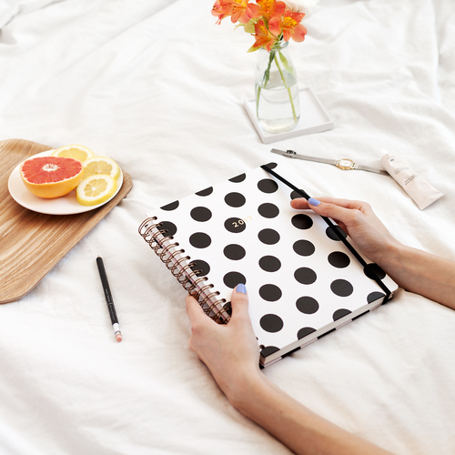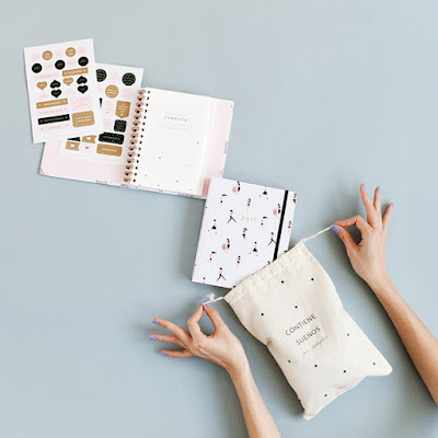 La agenda se entrega en una bolsa protectora, para que tengas tu agenda intacta durante todo el año y un pack de pegatinas motivadoras.
