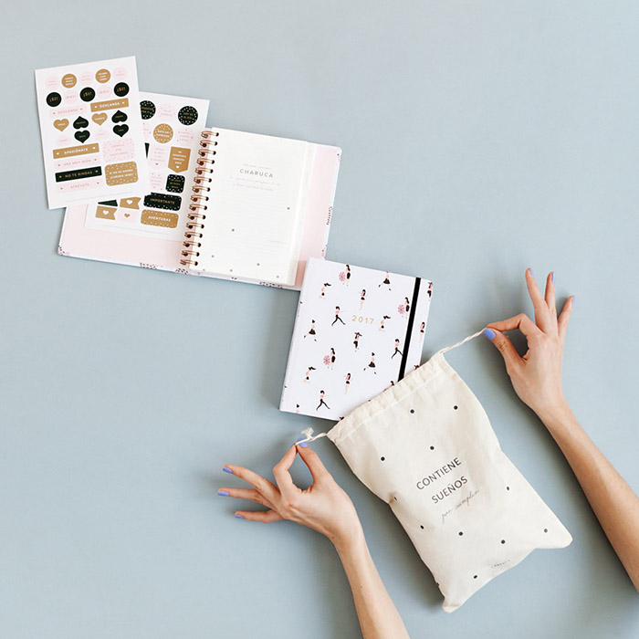 Una Agenda única diseñada por Charuca, de 256 páginas para llenarlas de citas, recuerdos planes y secretos. La agenda Charuca, que ha sido diseñada para mujeres trabajadoras.