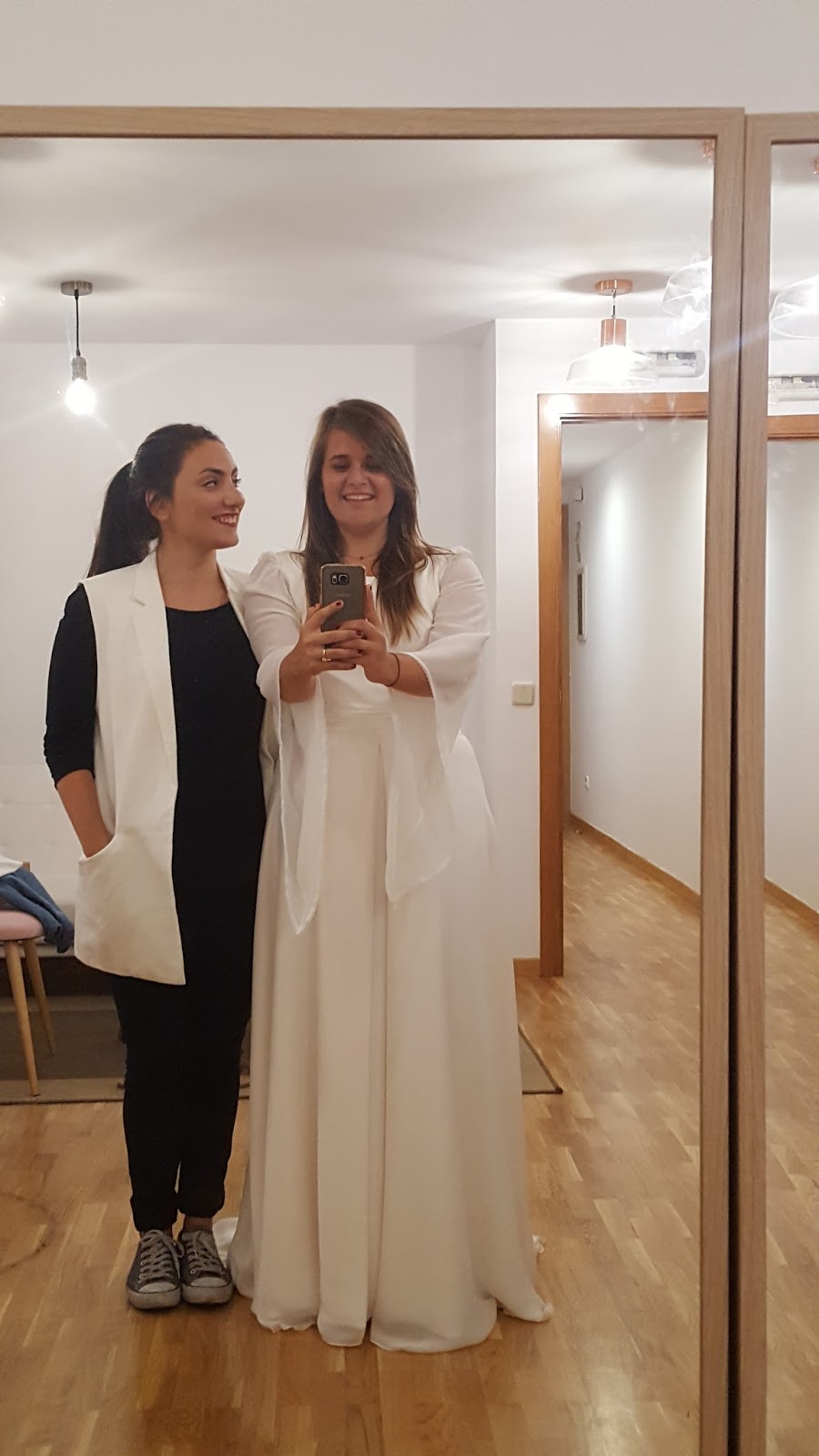 El proceso de crear un vestido de novia no es nada fácil, hay muchas emociones y trabajo puestos en ello. Yo os recomiendo que os rodeéis de las mejores personas, que os aconsejen, que os ayuden… Mi madre fue mi gran apoyo en cada prueba y aunque entiendo que os haga ilusión que el vestido sea sorpresa para todos, para mi fue mucho más especial compartir el proceso con mis amigas. Y ellas, hicieron el esfuerzo de viajar a Madrid conmigo para participar en ello. Mi tía, mi abuela y mi prima también me acompañaron en alguna de las pruebas, también les hacía mucha ilusión.