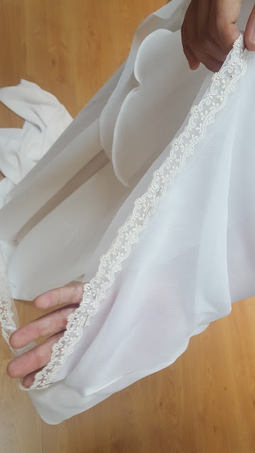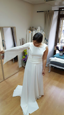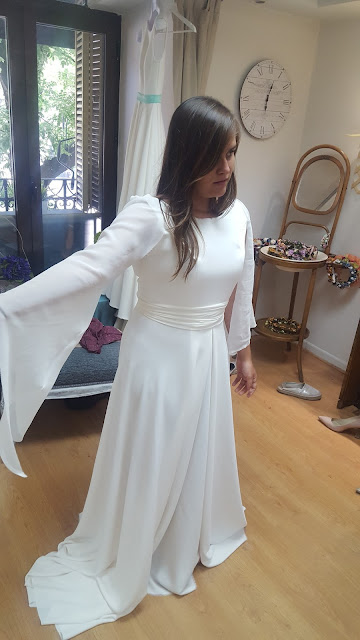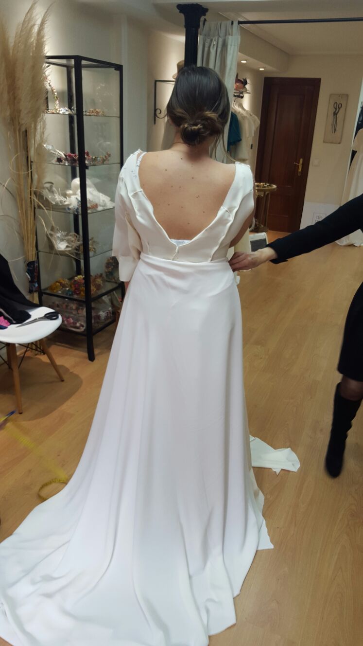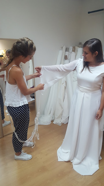 Tercera prueba. Ya nos encontramos a mediados de julio. Nos empezamos a fijar en los detalles de las mangas, yo quería añadir algo, no tenía claro qué. Así que me dejé aconsejar por Lucía y sus modistas.