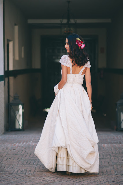 Las fotos son obra de Doblelente Boda y se realizaron en los preciosos espacios de Palacio de Aldovea. Los tocados son de la firma Puntulina y los zapatos de Keli&Salo. Del maquillaje se encargó Belle Poupee Make Up.