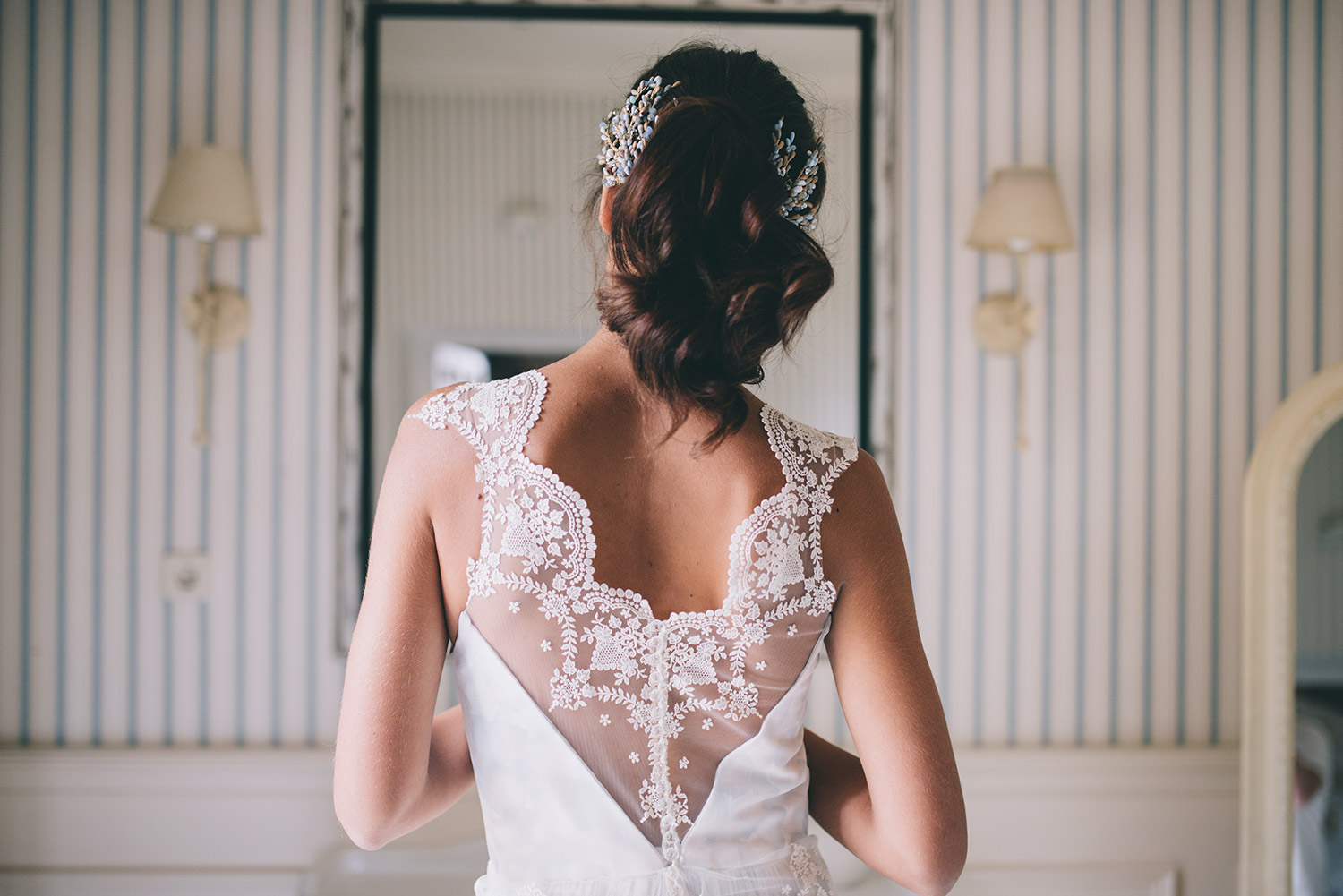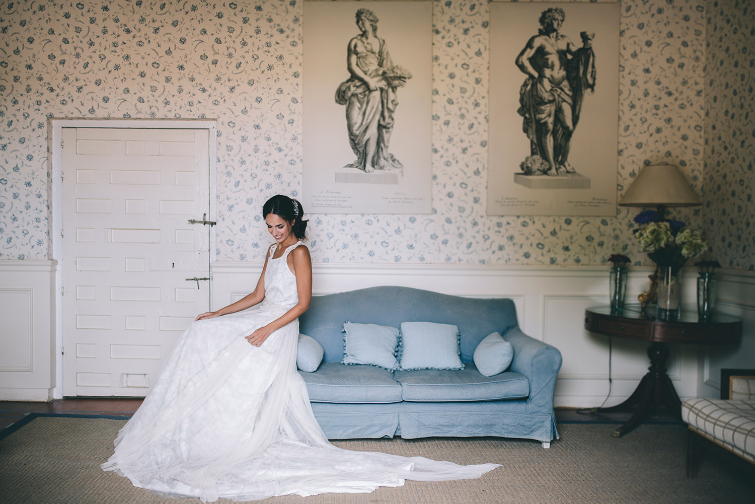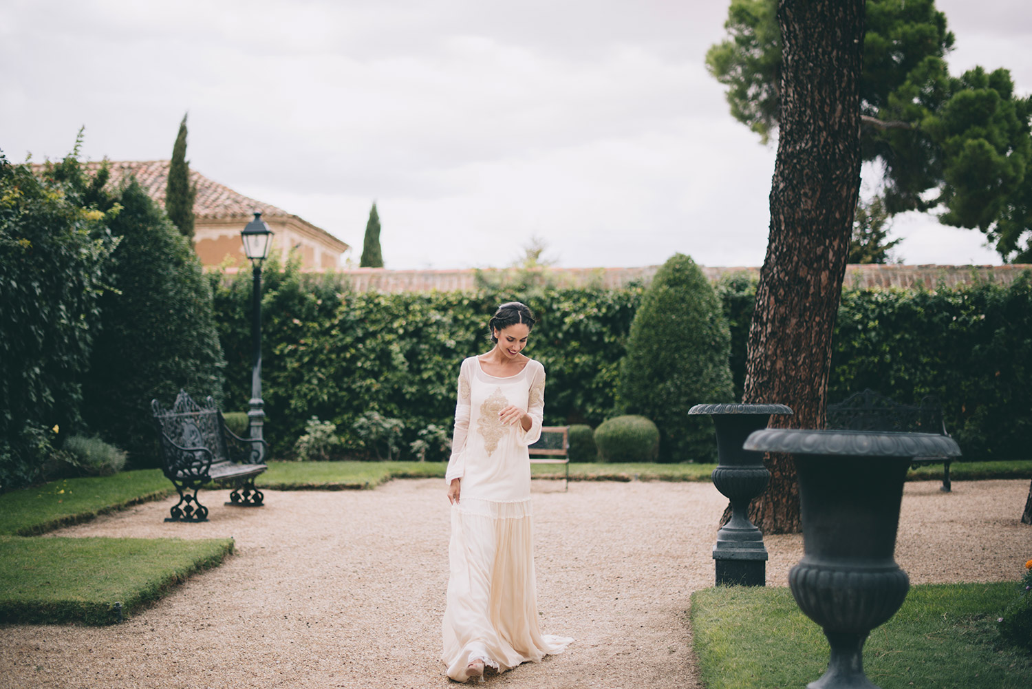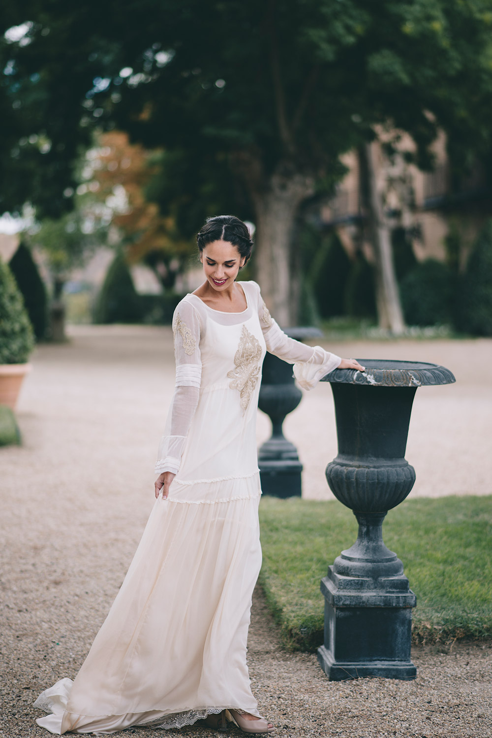 Las fotos son obra de Doblelente Boda y se realizaron en los preciosos espacios de Palacio de Aldovea. Los tocados son de la firma Puntulina y los zapatos de Keli&Salo. Del maquillaje se encargó Belle Poupee Make Up.