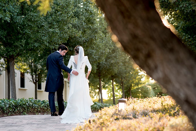 El novio lució un chaqué de la firma Tom Black junto a unos gemelos de Cartier. Gema escogió la firma Valenzuela para su vestido de novia con unos preciosos apliques en su espalda. Su estilismo corrió a cargo de Clara Cocera, que le hizo una maravillosa trenza con un tocado a juego con su vestido. En los pies, llevó unos increíble stilettos estampados en tonos azules de la firma Manolo Blahnick. DEMASIÉ!