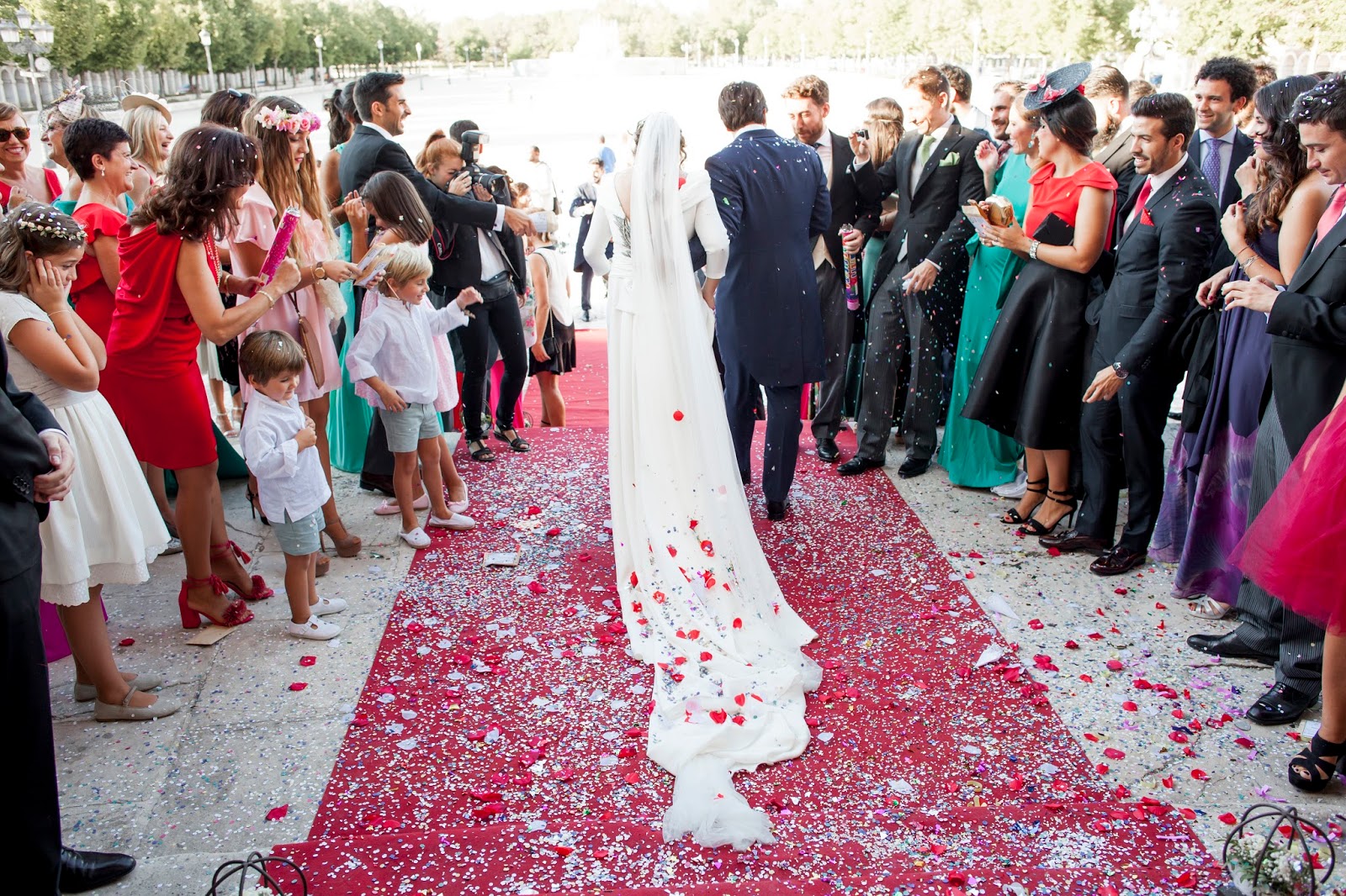 El novio lució un chaqué de la firma Tom Black junto a unos gemelos de Cartier. Gema escogió la firma Valenzuela para su vestido de novia con unos preciosos apliques en su espalda. Su estilismo corrió a cargo de Clara Cocera, que le hizo una maravillosa trenza con un tocado a juego con su vestido. En los pies, llevó unos increíble stilettos estampados en tonos azules de la firma Manolo Blahnick. DEMASIÉ!