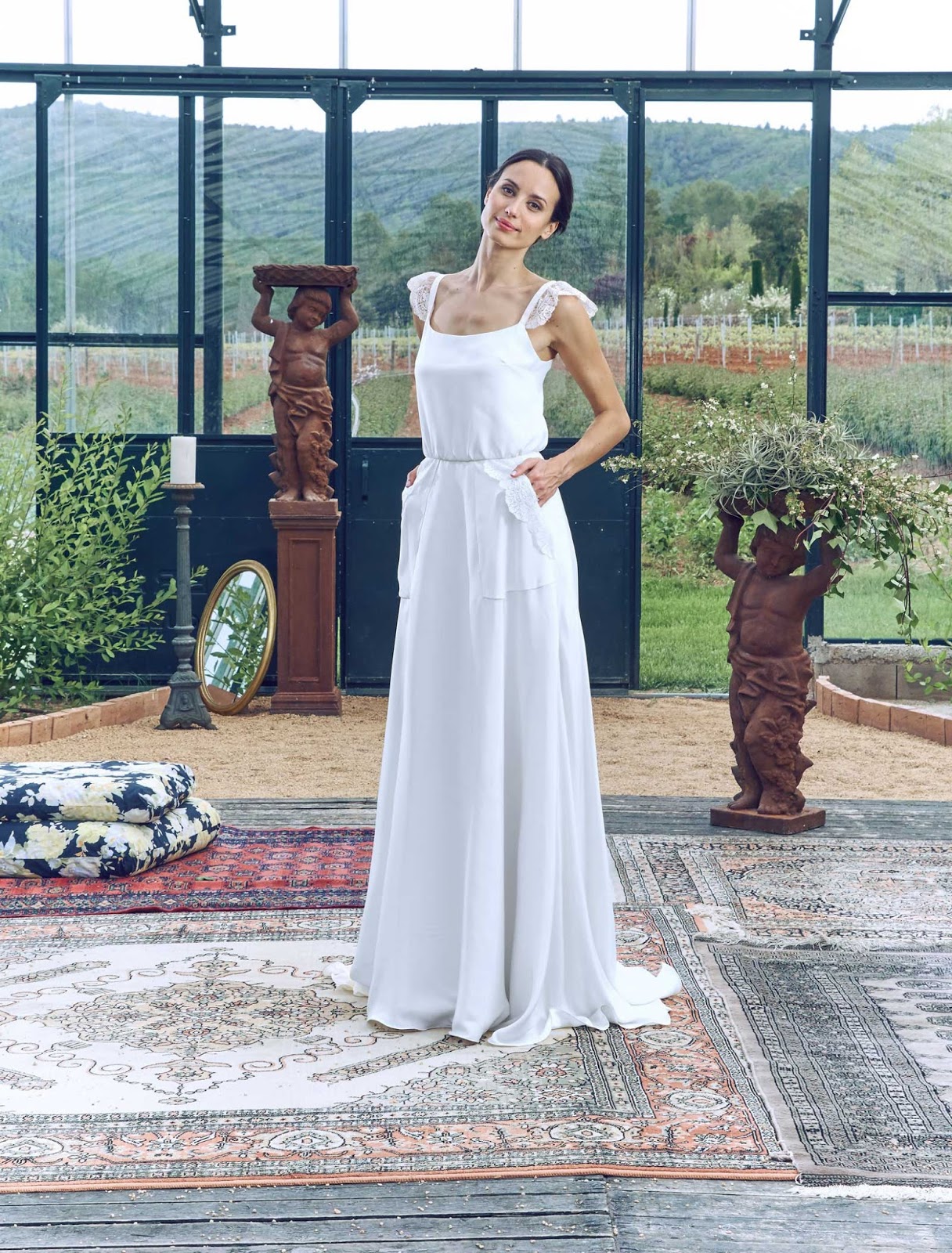 Me da miedo decantarme pero creo que si tuviera que elegir uno para vestir de novia sería el modelo Simone. Me encanta la caída de la espalda con el encaje y el detalles de las mangas.