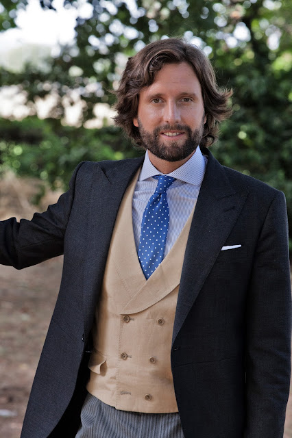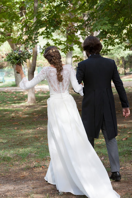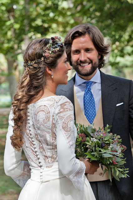 Y no se me olvida hablaros del novio: Juan iba elegantísimo con chaqué de la firma Suitz, un chaleco color albero y una corbata azul con topos de la marca Hackett London. Las fotos de la pareja son una verdadera maravilla y es que eligieron un día soleado y un entorno verde y cuidado; como a mi me gusta 😉