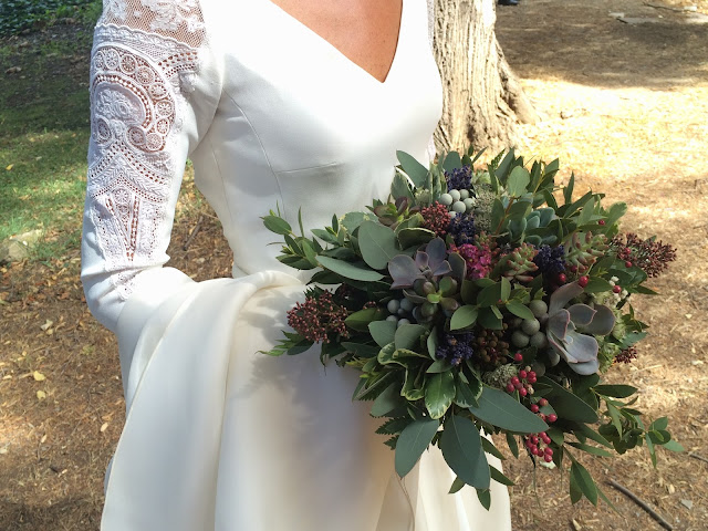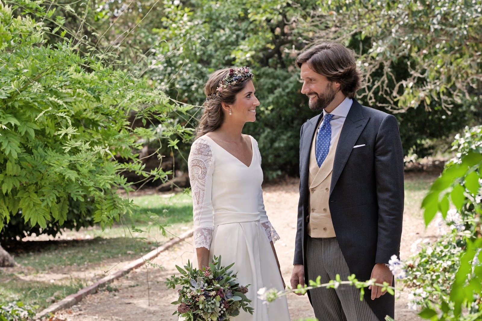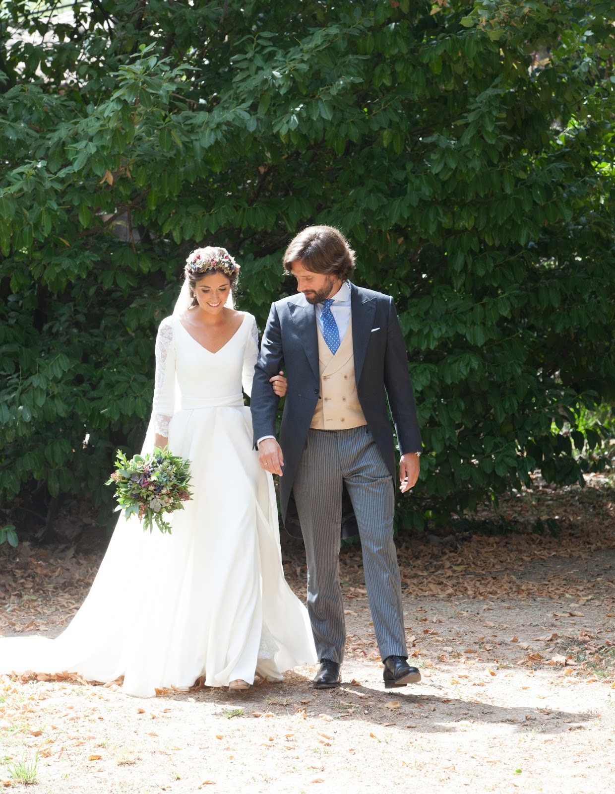 Y no se me olvida hablaros del novio: Juan iba elegantísimo con chaqué de la firma Suitz, un chaleco color albero y una corbata azul con topos de la marca Hackett London. Las fotos de la pareja son una verdadera maravilla y es que eligieron un día soleado y un entorno verde y cuidado; como a mi me gusta 😉