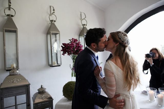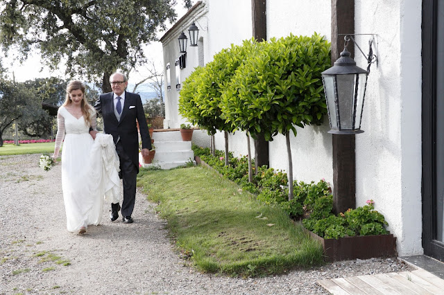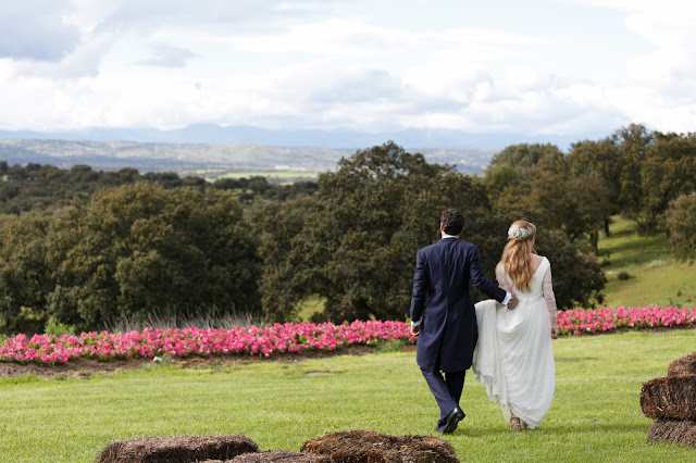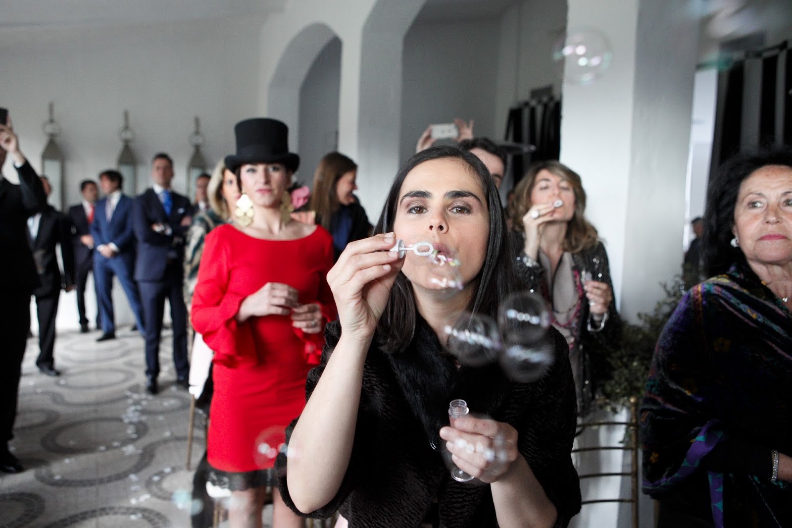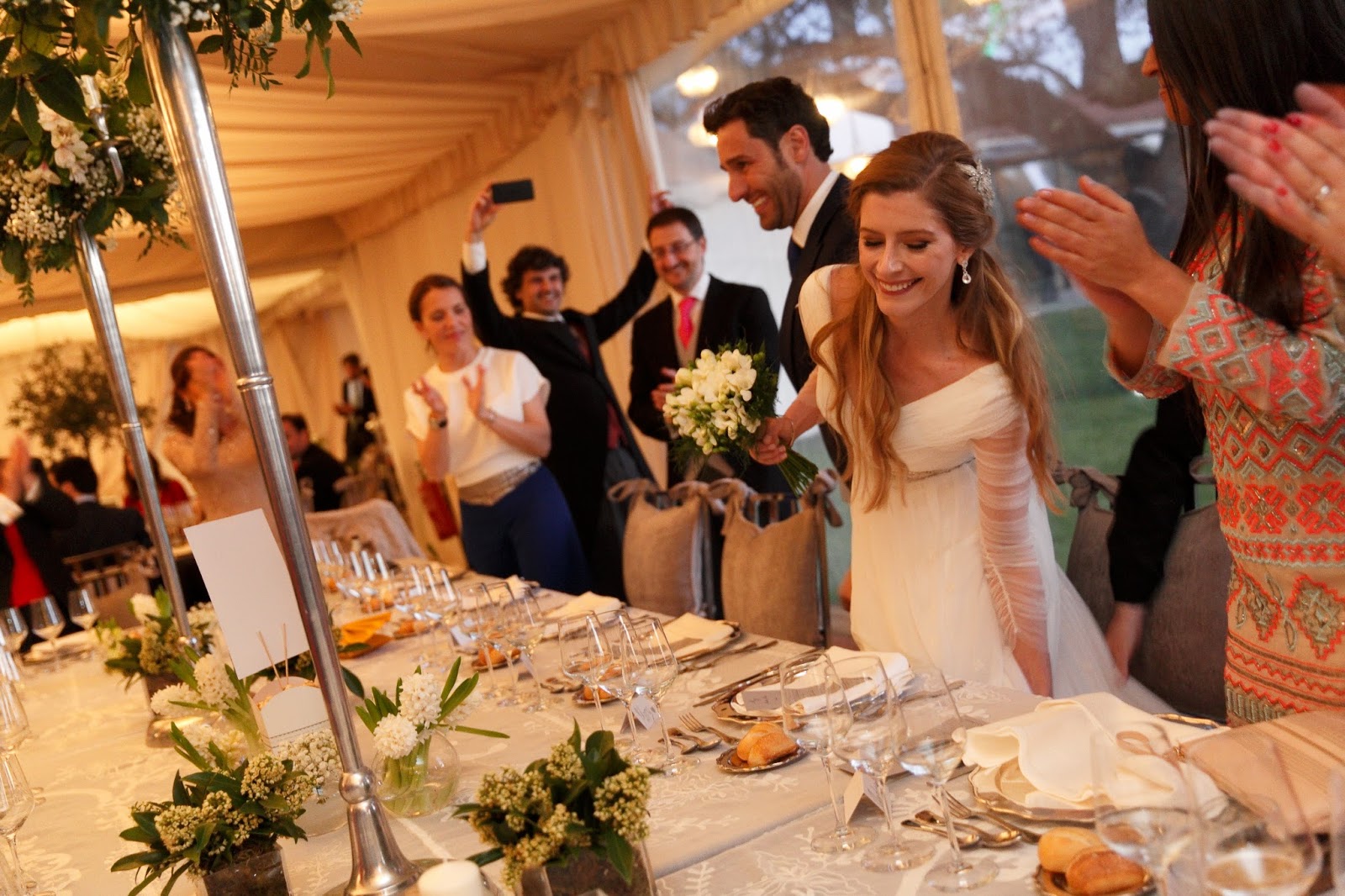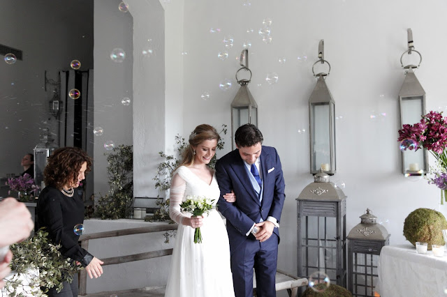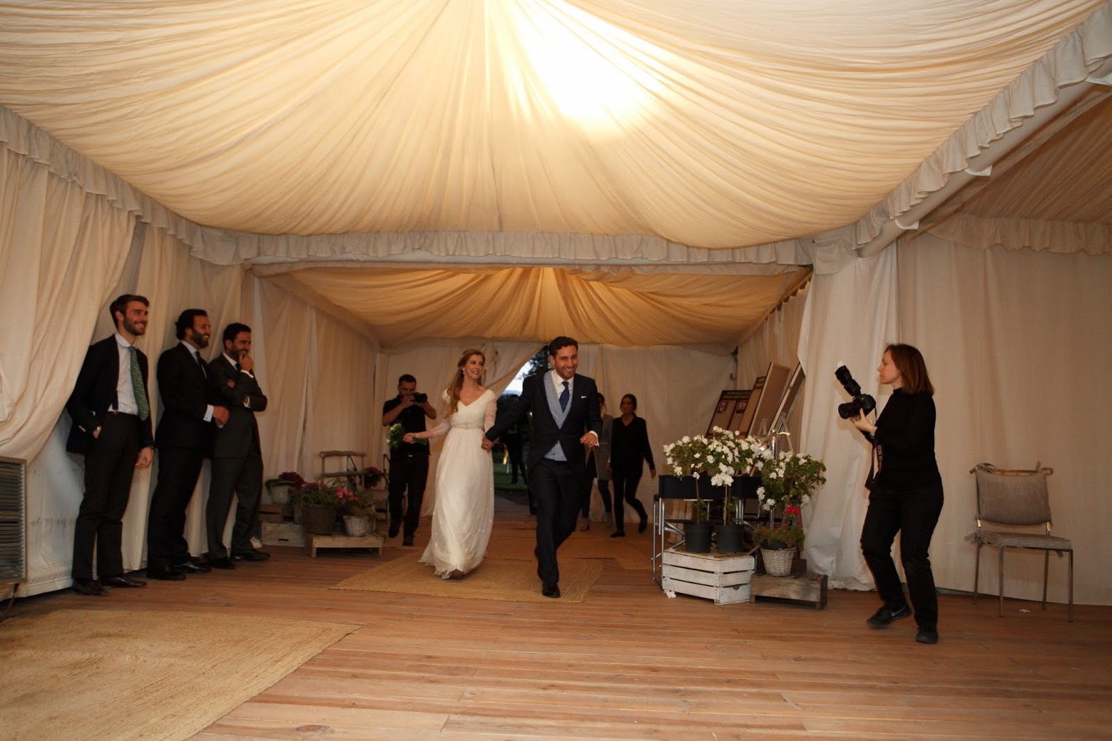 María y Hugo se casaron un 23 de abril del pasado año en la Finca La Reserva de Villanueva de la Cañada. Allí celebraron una preciosa ceremonia civil decorada por Reyes Sánchez Lamadrid, del propio personal de la Reserva. Los invitados recibieron unos pomperos con forma de botella de champán para la salida de los novios