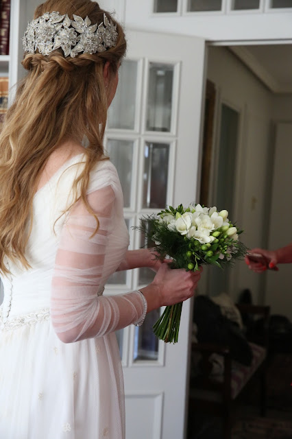 La novia repartió cinco ramos muy similares al suyo, obra de Sibilina Deco.