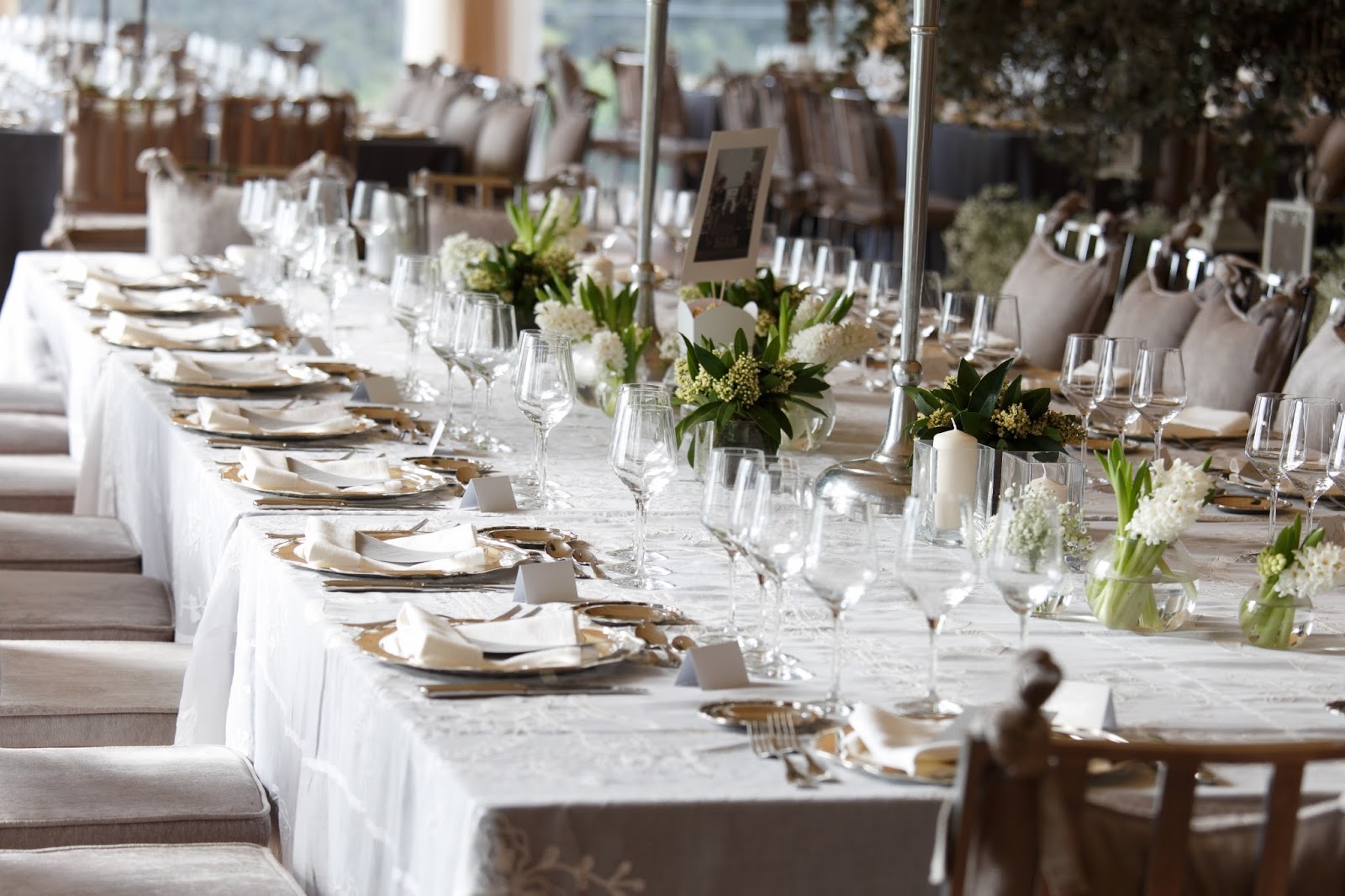 Los invitados disfrutaron de una comida en un precioso salón decorado con árboles y centros de mesa en altura. Los propios novios prepararon los meseros con películas del cine y el seating con fotografías imantadas, así los invitados se los podían llevar de recuerdo. ¡Me encanta!