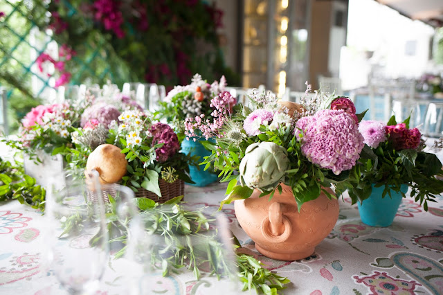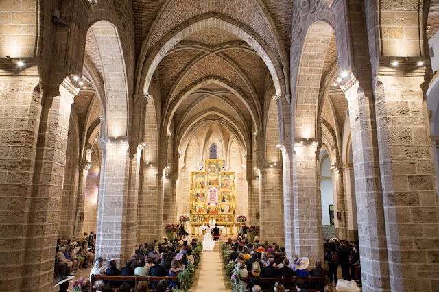 Su madre (izq.) iba vestida por el diseñador Luis Rocamora, y su tía (dcha) llevaba un precioso tocado de TousetteFlores la Tartana se encargó de la decoración, tanto en la iglesia como en la alquería; así como del ramo de la novia. Si os fijáis, su hilo conductor fueron los verdes y tonos fresa. En los bancos de la iglesia frondosidad verde, sin flor y en la entrada unas cestas y cañas rebosantes junto a dos olivos.
