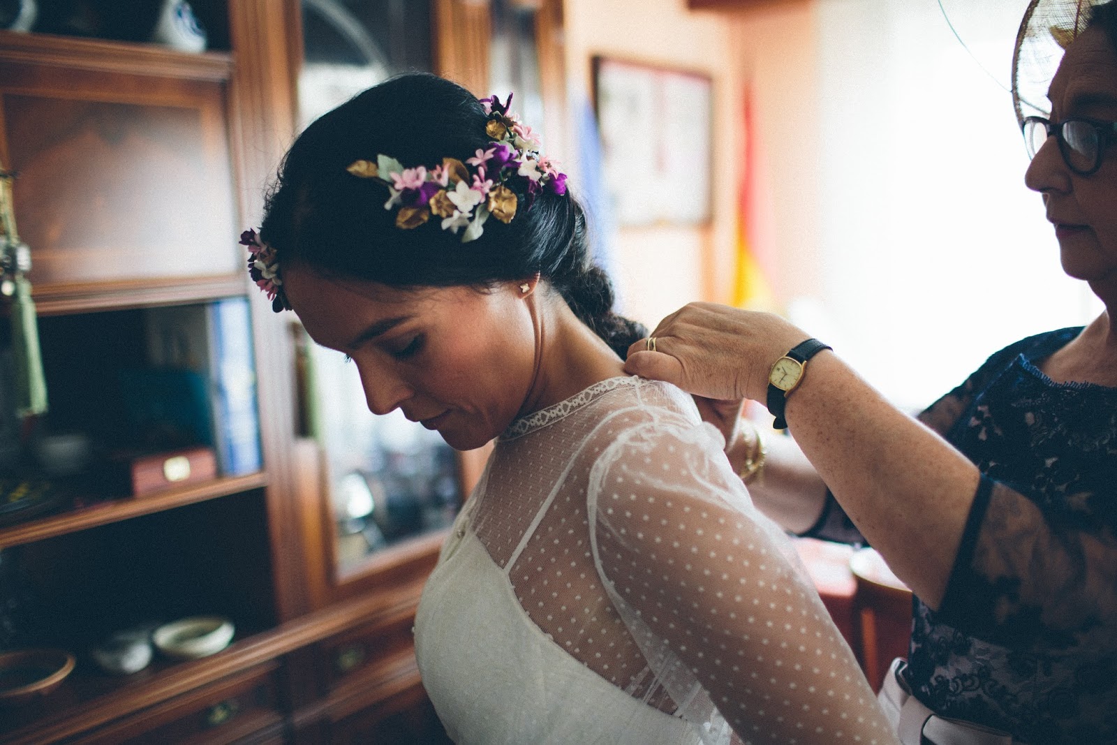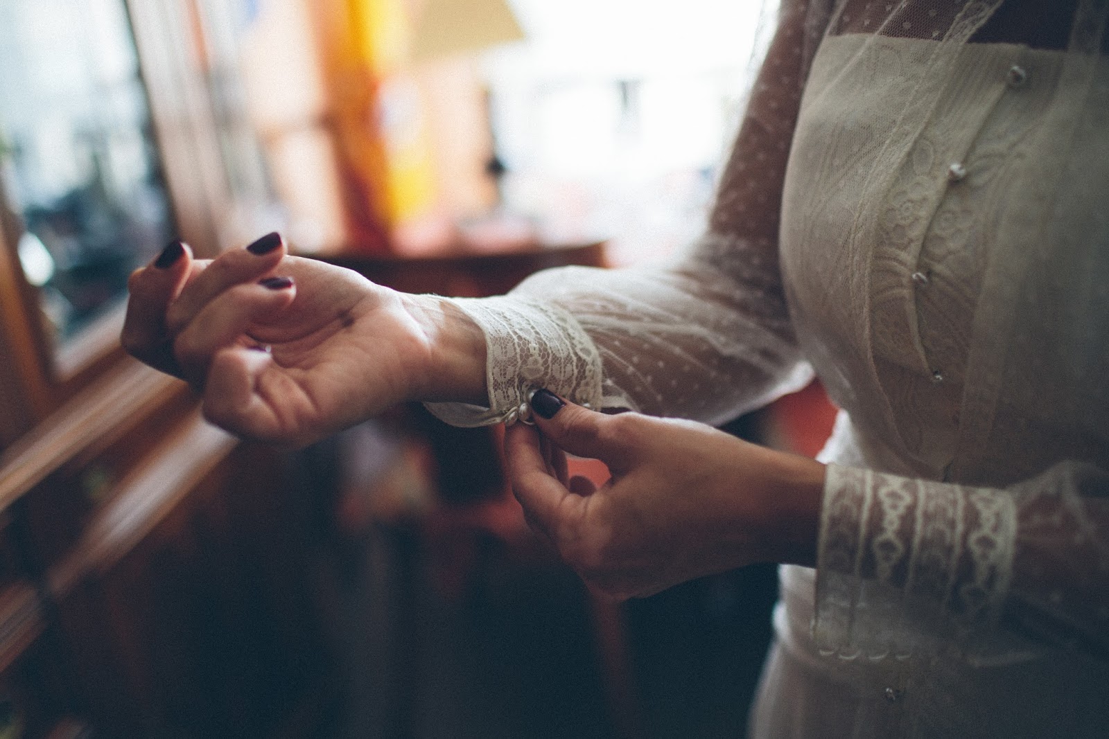 Los propios novios se encargaron de lo que llaman «La mesa de los vicios», me encanta. Además, prepararon un rincón con alpargatas y una maleta antigua de la abuela de la novia, que resultó muy útil para las invitadas que se cansaban de sus tacones. Estos novios tuvieron detalles para todo el mundo, las parejas que esperaban un bebé recibieron unos preciosos bodies de Pimpis&lampis, una monada!