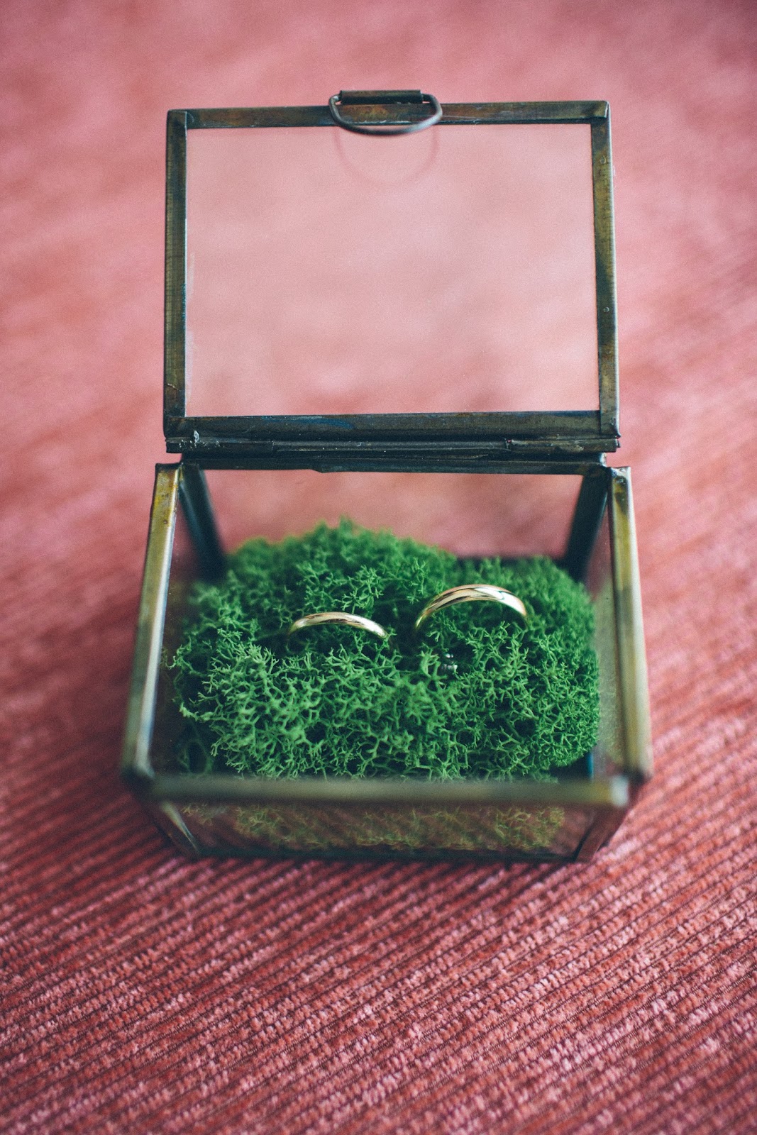 Floristería Alba fue la encargada de la decoración del pazo: centros de mesa a base de guirnaldas verdes, las mesas de los aperitivos, las tiras de bombillas, las lecheras en los árboles, incluso la zona chill out. Los manteles los alquilaron a New Way y los bajoplatos a Boketé Catering. Los propios novios se encargaron de comprar los vasos en tonos verdes de Zara home así como los distintos portavelas.