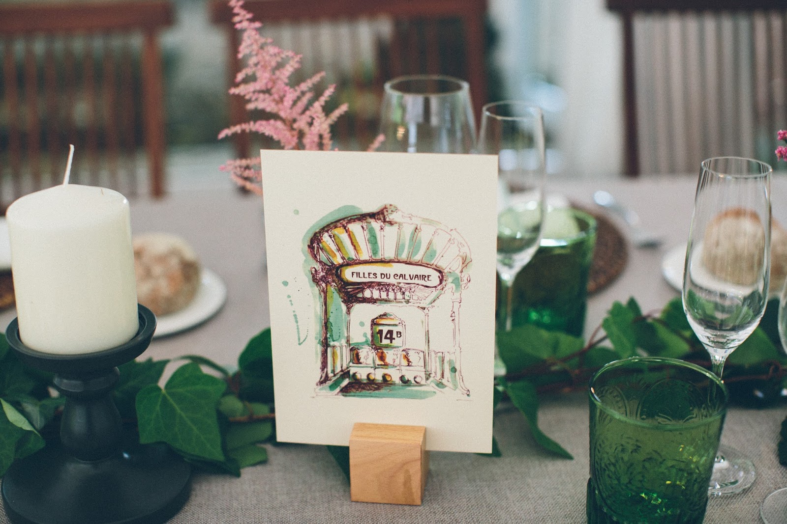 Los meseros también tuvieron su importancia, los novios escogieron nombres de estaciones de metro de París, donde llevan viviendo desde hace nueve años y tienen tantos recuerdos. Los amigos se dispusieron en dos grandes mesas rectangulares de 40 comensales y el resto de los invitados en mesas redondas.